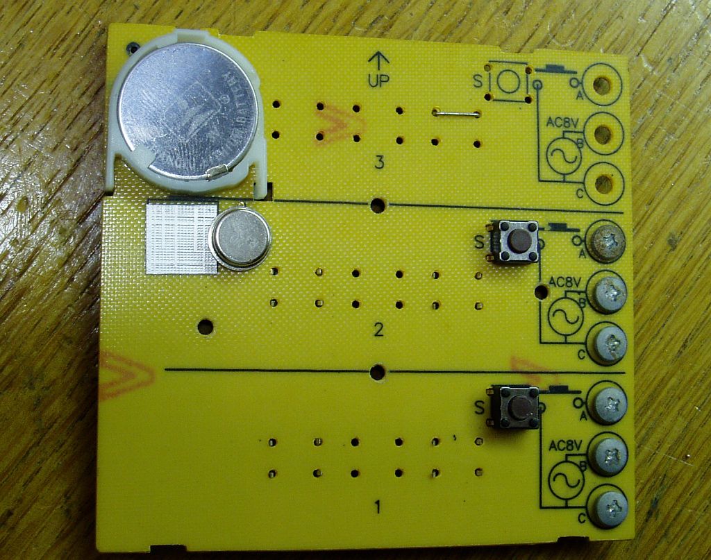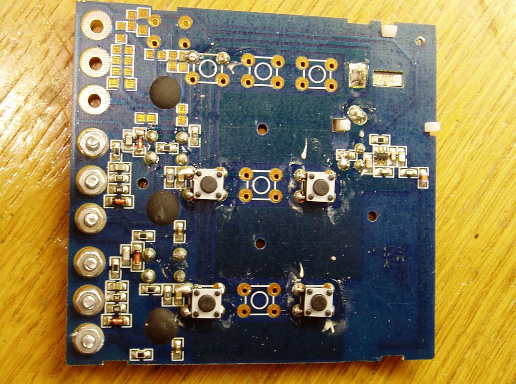 vysílač ze sady BELL 200, výrobce německý m-e, bez funkce, na výstupu je nějaký monolit v plechovce Ø 10mm, u tří tlačítek tři kodéry pod epoxidovým plivancem. Nedá se detekovat žádná vf aktivita.