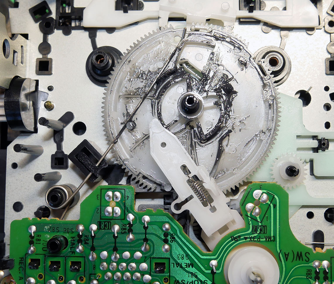 Tape deck přehrává a přetáčí v pohodě, ale pokud během přehrávání dám STOP, tak se jedna strana kazety s podivným zvukem protočí a pak nejde znovu spustit přehrávání, protože je kazeta trochu vymotaná. Srovná se to stisknutím přetáčení.