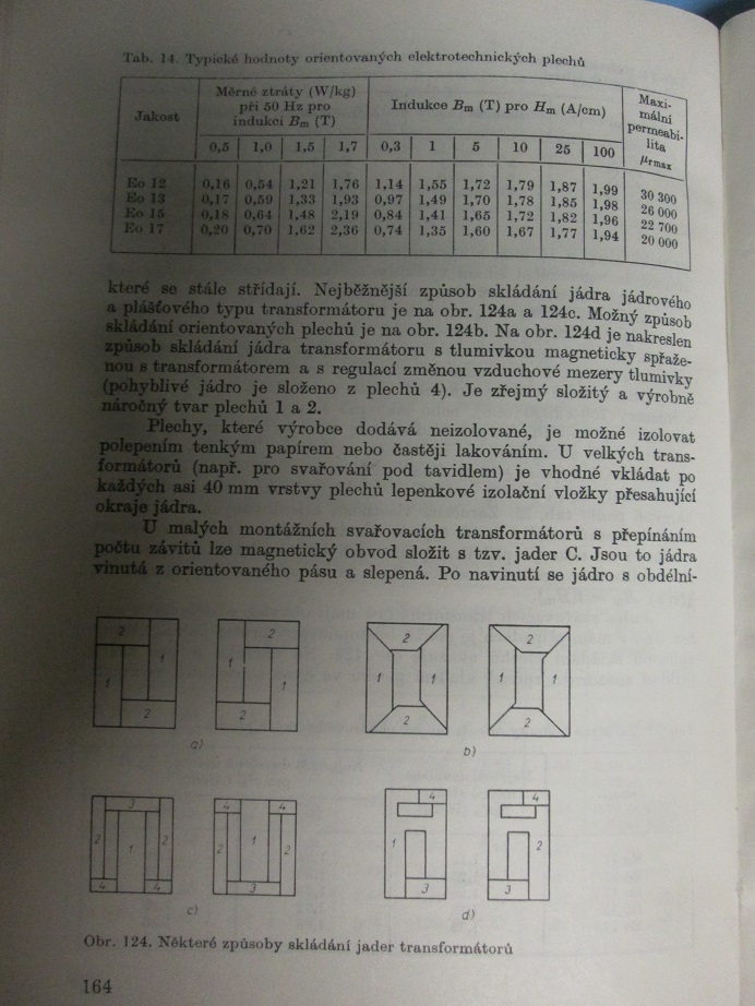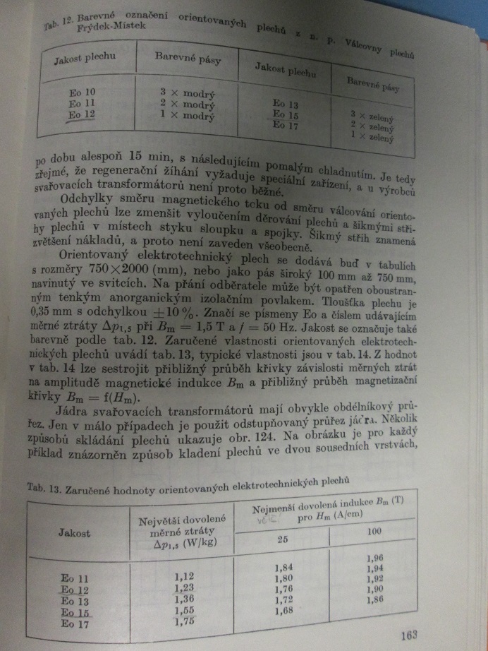 Ta tabulka je z knihy Radiotechnika do kapsy od Slávy Nečáska. Ještě nějaké další informace jsou v knize Transformátory pro obloukové svařování. Tam jsou i údaje a barevné značení Eo orientovaných plechů, což se může někomu hodit. večer to sem hodím..