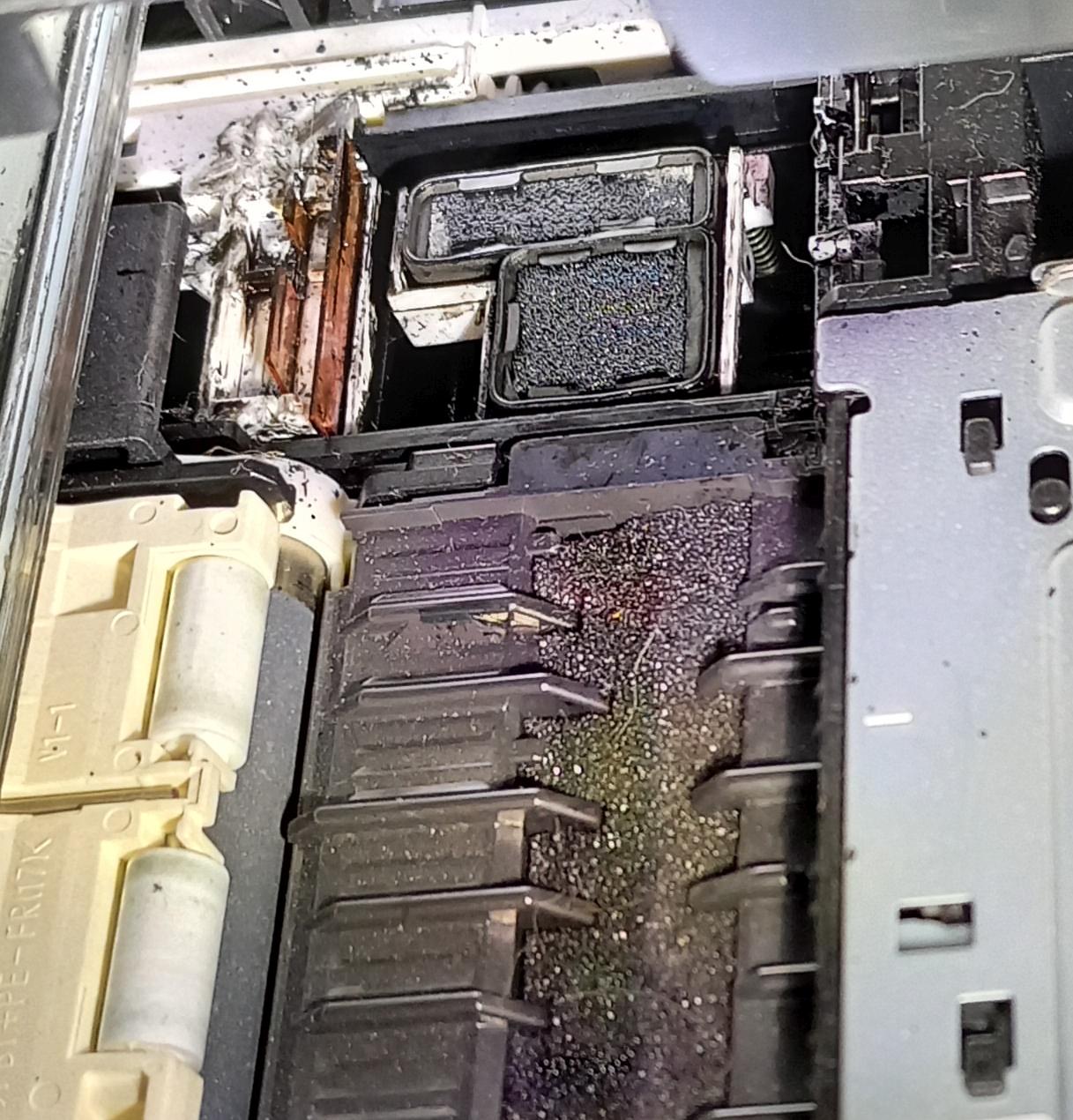 Na černén plivátku byl zaschnutý inkoust. To jsem vyčistil. Zkusil jsem hloubkové čištění černé a odsávaná inkoustu moc nefunguje. Na plivátku černé je neodsátý inkoust.