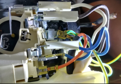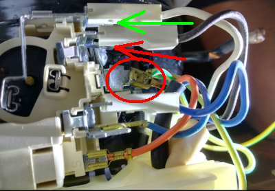 - podle vašich rad (všímej si mechanických škrábnutí) je viditelně škrábnutý faston (na 5hodinách těsně) od bílého vodiče