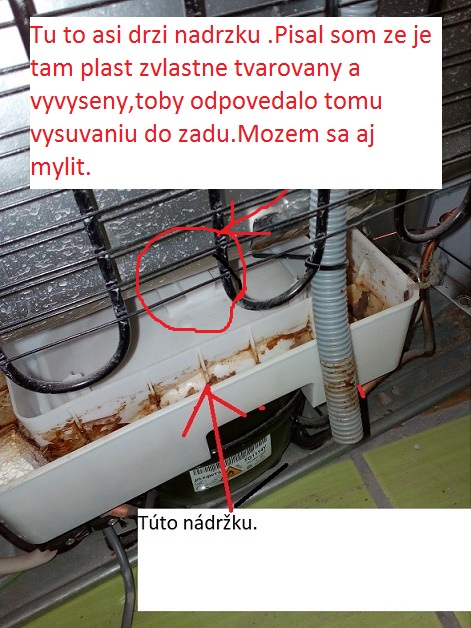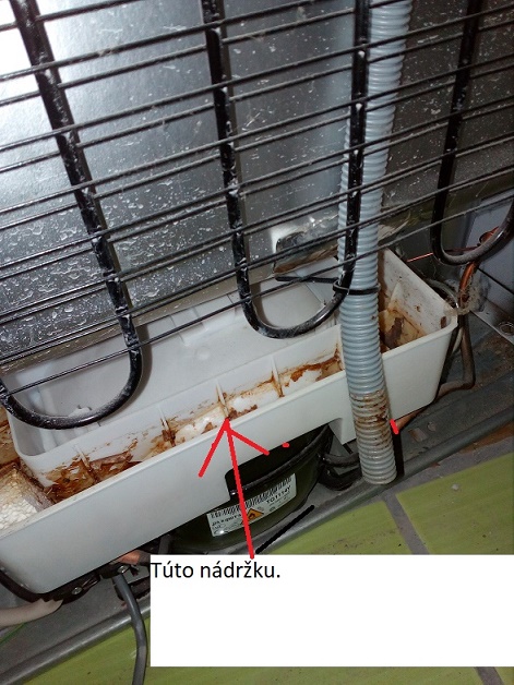 Když myslíš ,že se mýlím tak si to udělej jak chceš. Na videu je vidět i ten tmel na kompresoru. Když jsem doma měnil kompresor u lednice tak ta miska byla taky přilepená na kompresoru. Nevím jak by jsi ji tam chtěl jináč přidělat. Je to odpařovací miska, do které ti teče při odtávání voda která se teplotou kompresoru odpaří. Přišroubovat na kompresor nelze .