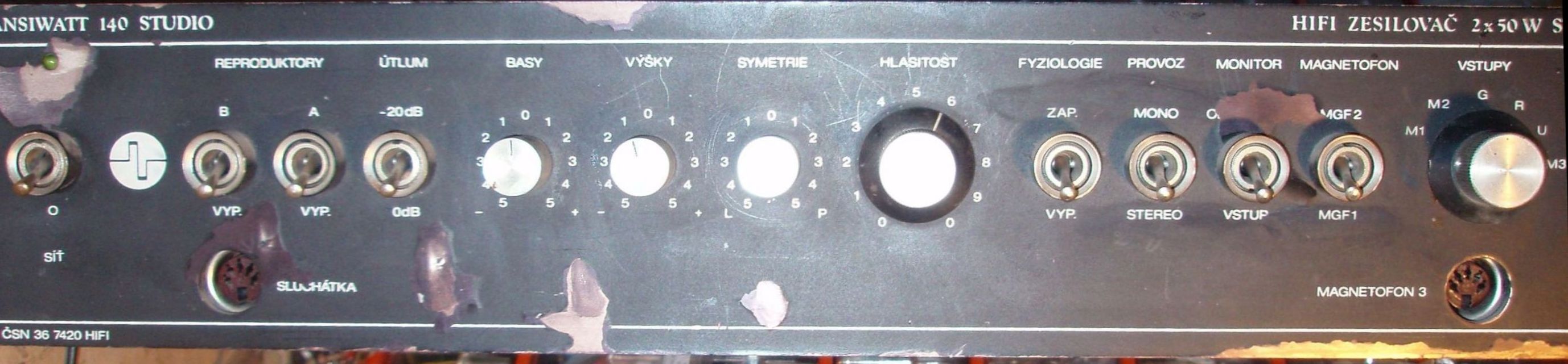 Upřesním svůj dotaz. Konečně jsem vyoral zesilovač získaný v létě za hubičku. Panel je v žalostném stavu, uvnitř je v nečekaně dobrém stavu, dokonce ani nebyl uvnitř zaprášený ani žádní pavouci brouci a podobně. Nenapaden kutilem, dokonce to vypadá, že tam nikdo nic nepájel, vše funguje, jen trochu chrastily potenciometry, to jsem odstranil. Teď k věci, myslel jsem, že vyfotím panel, zedituju a vytisknu, tedy nechám vytisknout na průhlednou folii, co je bílé nechat průhledné a nalepit na bíle nastříkaný panel. Je to vůbec nějak schůdné a má smysl se tím zabývat? Totéž bych potřeboval na AZS 222 a snad ještě i k něčemu jinému. Měl jsme tím začít vlákno ale tak nějak mě v záchvatu pilnosti napadlo napsat dřív než začnu. Panel přiložen, samozřejmě že fotka k uvažované editaci by vypadala mravněji.