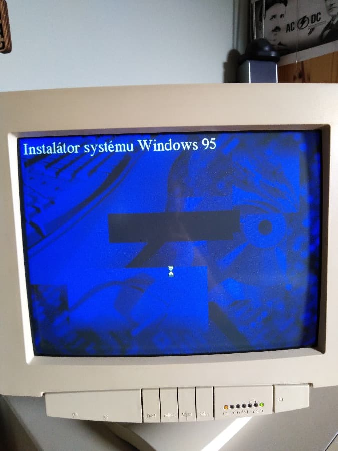 Mem testem to projet zkusím, ale je hodně divný aby to byl nějaký IDE kabel nebo pamět, ještě před tím než jsem na něj začal instalovat Win.95 tak jsem tam měl nainstalovaný MS DOS na zkoušku, a vše fungovalo jak má, zkoušel jsem na tom hrát hry, a šlo to bez problému, měl jsem tam spuštěnej Volkov commander a taky bez problému, dělal jsem tomu různý zátěžový testy a benchmarky a vše fungovalo jak má. Takhle se to vždycky zasekne na stejném místě, vždycky po nakopírování souborů na disk nakopíruje je to tam z CD pak to ukáže okno instalace Windows, dám další že souhlasím s podmínkami a pak se vždycky stane tohle, nic to nevypíše, prostě jenom to co je na obrázku, a úplně celý to zamrzne. Jinak disk má myslím že nějakejch 300Mb, takže by tam snad měl být dostatek místa.