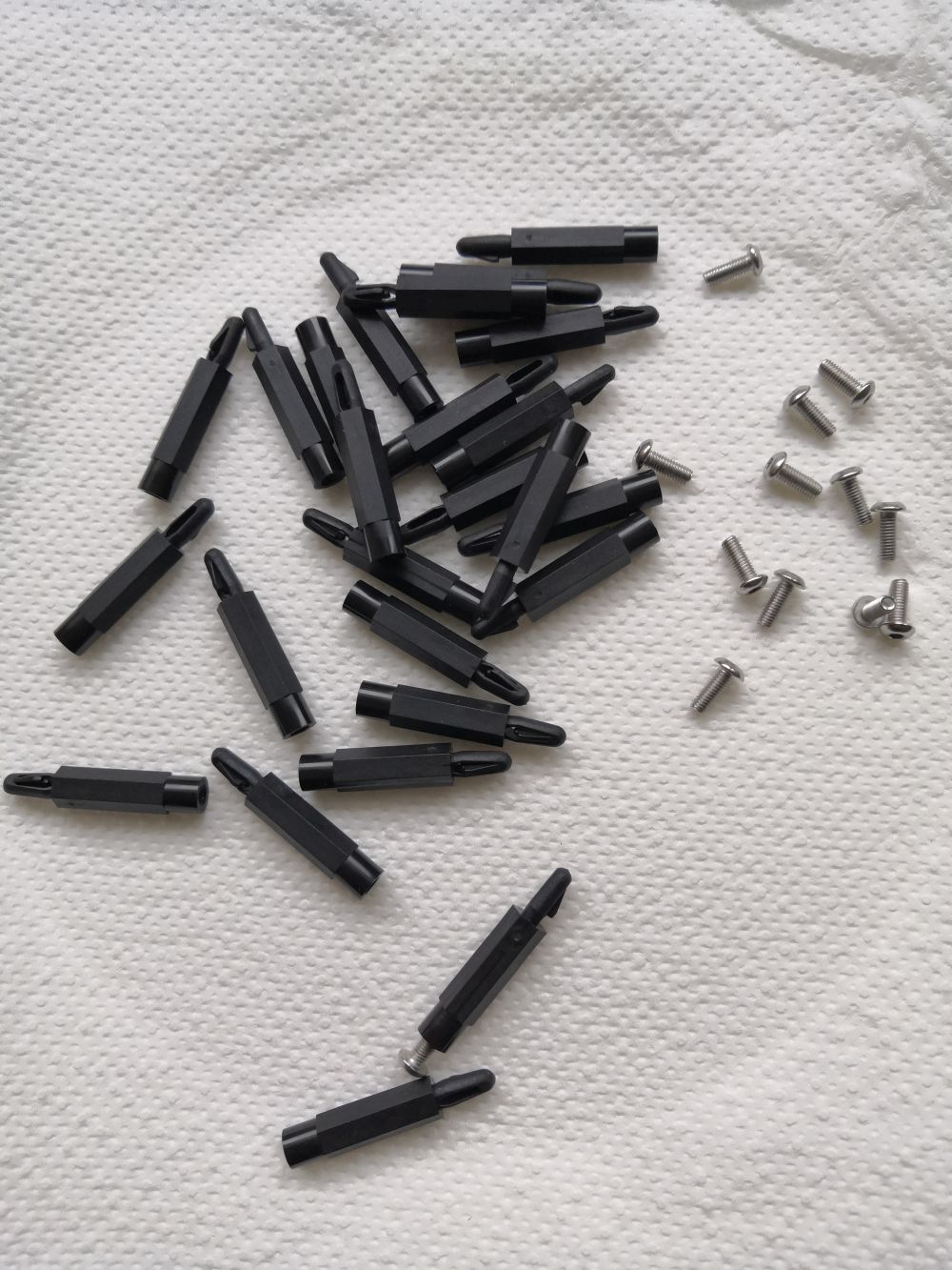 Pokud máte někdo zájem tak nabízím plastové distanční sloupky. Myslím že to je nylon.