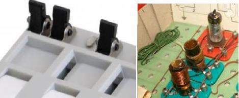 Mně je ta fotka úplně jasná. Jakási zdířka v papíru, do které se vloží drátek a zašprajcuje gumovým špuntíkem. To už téměř před šedesáti lety to měla lépe vyřešené stavebnice Radieta. Tam byly vinuté pružinky, které se natáhly, vložil se do ní vývod součástky, pružinka se pustila a sevřela drátek. Samozřejmě se tam dalo těch drátků vkládat více.