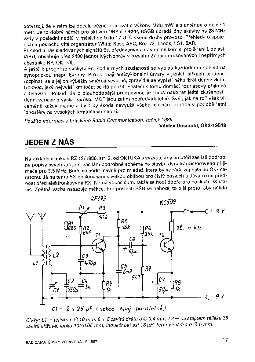Zveřejněno: Radioamatérský zpravodaj ročník 1987 číslo 9