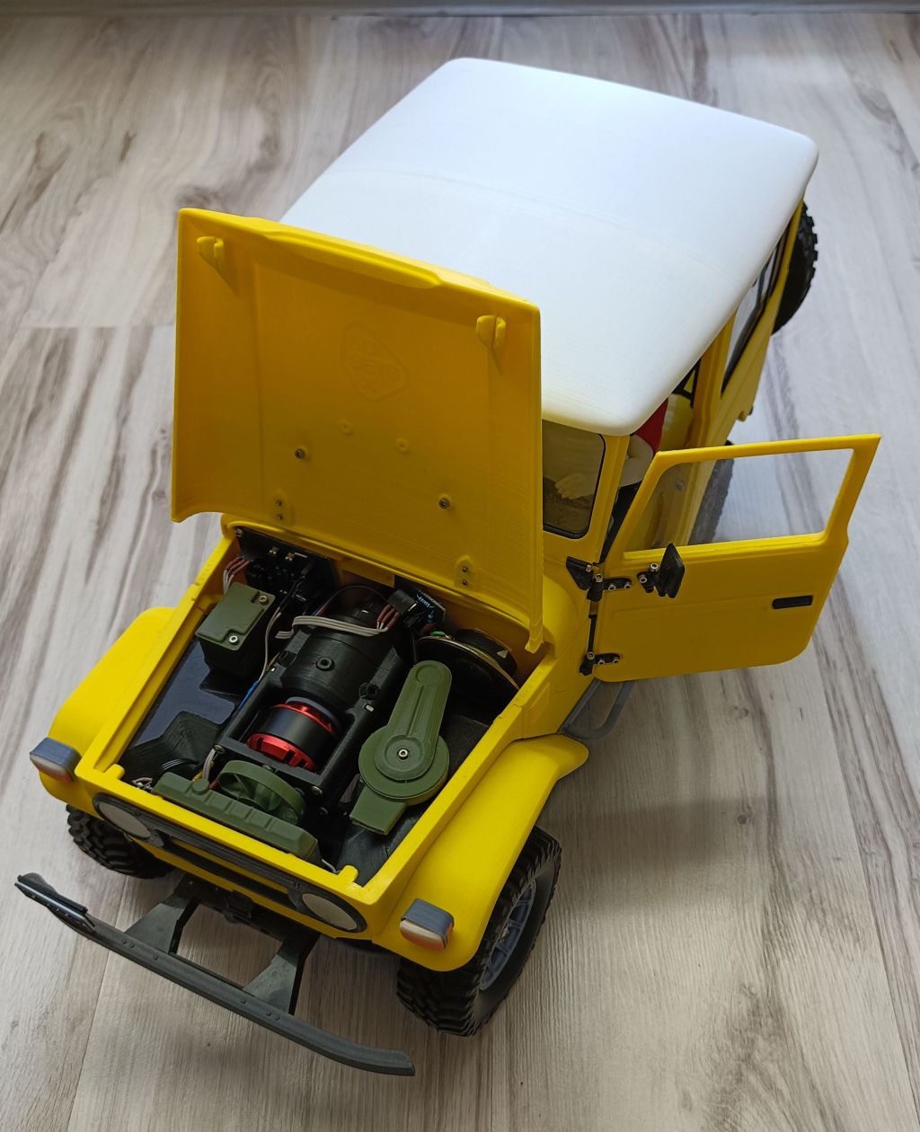 Jezevec mi předběhl, ale popsal to téměř stejně. A jen pro ilustraci sem dám tu "modelařinu". Je to 1:10 a tištěná je i převodovka a diferenciály.
