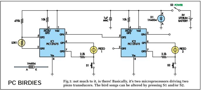 Kdysi vyšlo něco podobného v Everyday Practical Electronics 8/2014. Jenže to už bylo trochu modernější, ale i podle mého lepší. Umí i reagovat na světlo. Měl jsem to postavené a návštěvy se divily, kde mám klec. Laughing