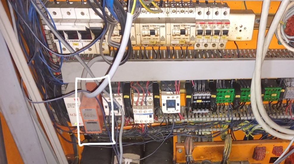 To relé spíná dva stykače v sérii na přívodu silového napájení - jsou na nich rozpínací kontakty v sérii. Ve vypnutém stavu musí být kontakty sepnuté. Při poruše jednoho stykače se to taky nesepne.