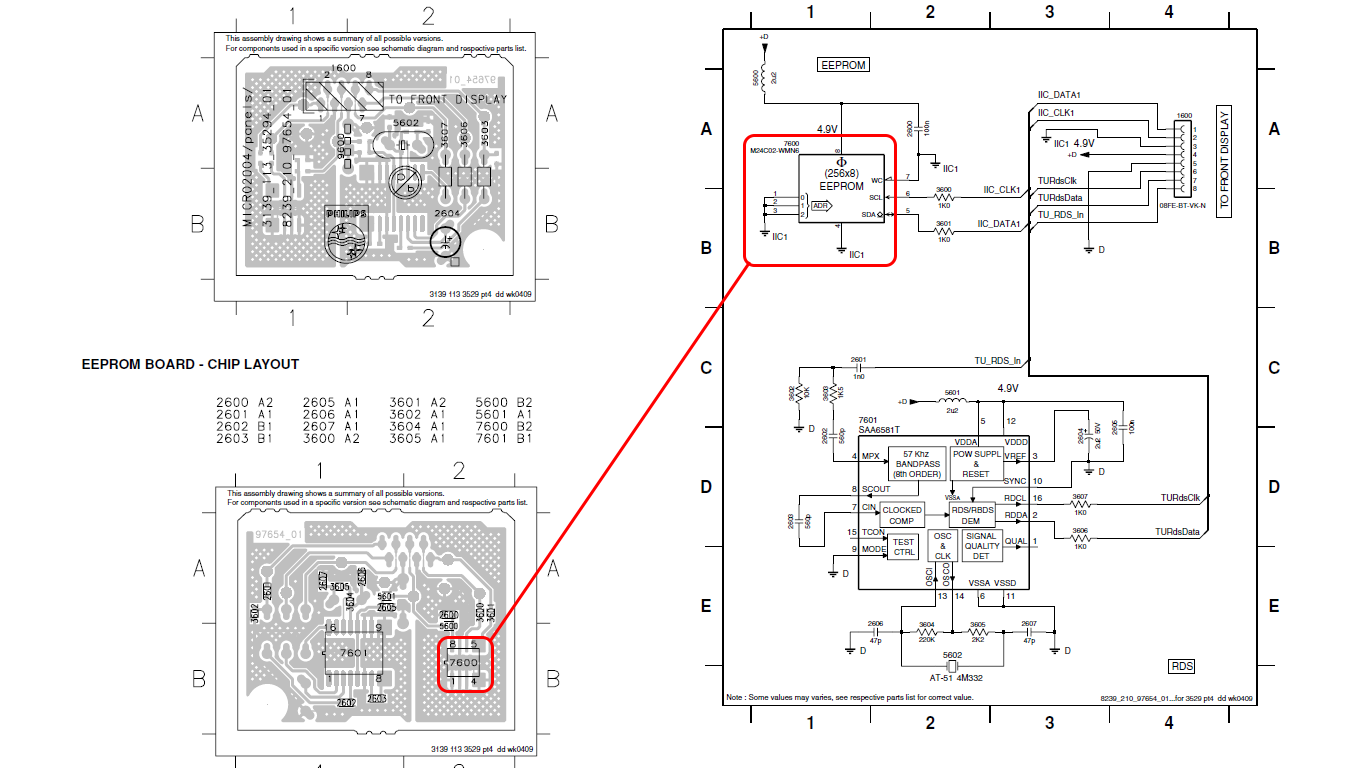 V servisním návodu je uvedena EEPROMka M24C02-WMN6 a je tam popsán i nějaký test EEPROM viz přiložené obrázky.