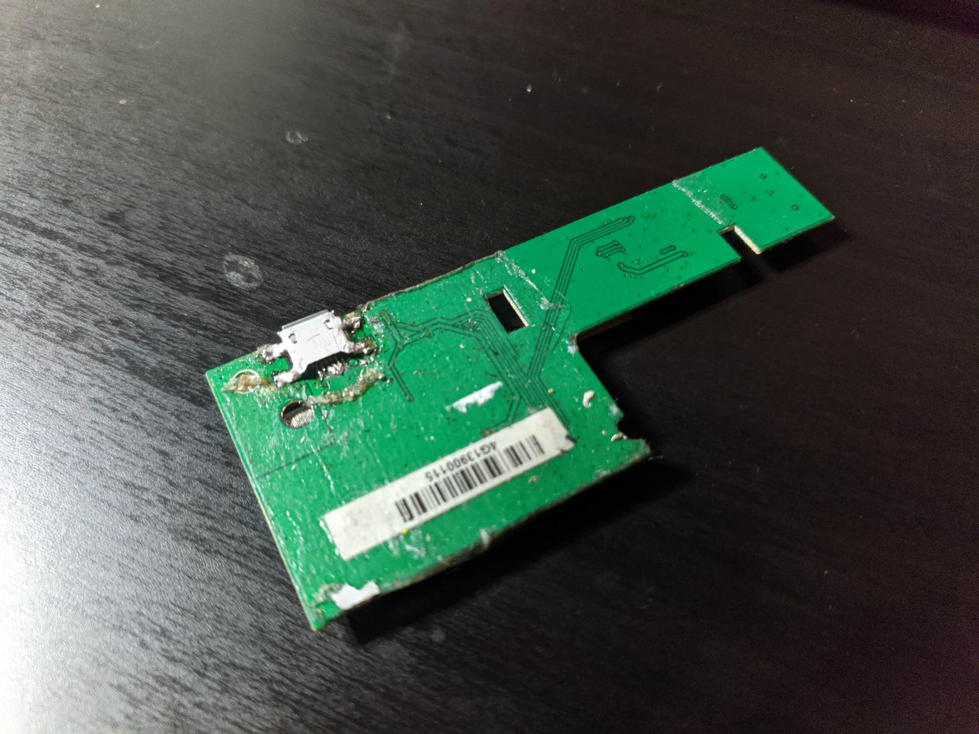 Obsahuje microusb konektor, ktery byl vylomeny. Zkusil jsem si ho opravit sam a fungovalo to do doby nez se vylomil znova. Bohuzel s sebou vzal i kontaktni plosku na plosnaku. Jako reseni vidim napajeni noveho s propojeni pomoci dratku (stopy na plosnaku jsou krasne videt) a nebo pripajet usb kabel "natvrdo".