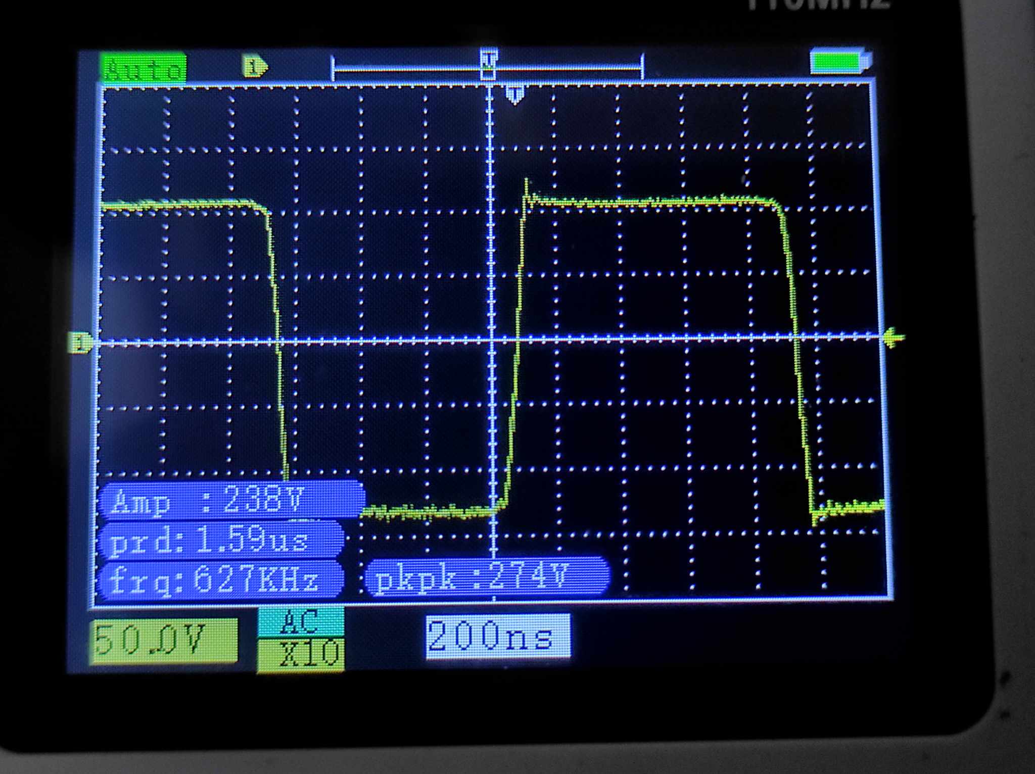Na 240V 627kHz to ještě jede a na 260V už to zkratuje.jpg