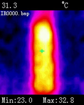 Sandisk SDCZ430-016G pripojený cez USB hub do mobilu Unihertz Jelly 2. Plastový povrch nie je až tak horúci. Termo-kamera vidí cez plast teplotu čipu vnútri.