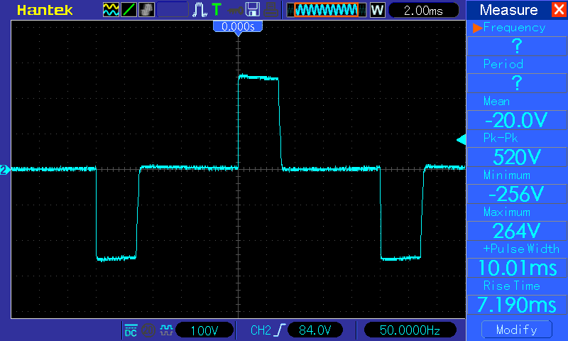 Vypínání DC proudu vyšších hodnot mechanickým kontaktem je docela problém, u sinus AC to je v pohodě. Ale jak se chová oblouk mezi kontakty v případě AC obdélník? U sinu je tam chvilka, kdy proud klesá k nule a oblouk může zhasnout. Obdélník to nemá, proud jen okamžitě mění polaritu. Stačí to ke zhasnutí oblouku?