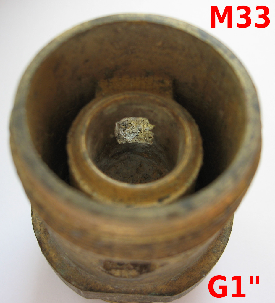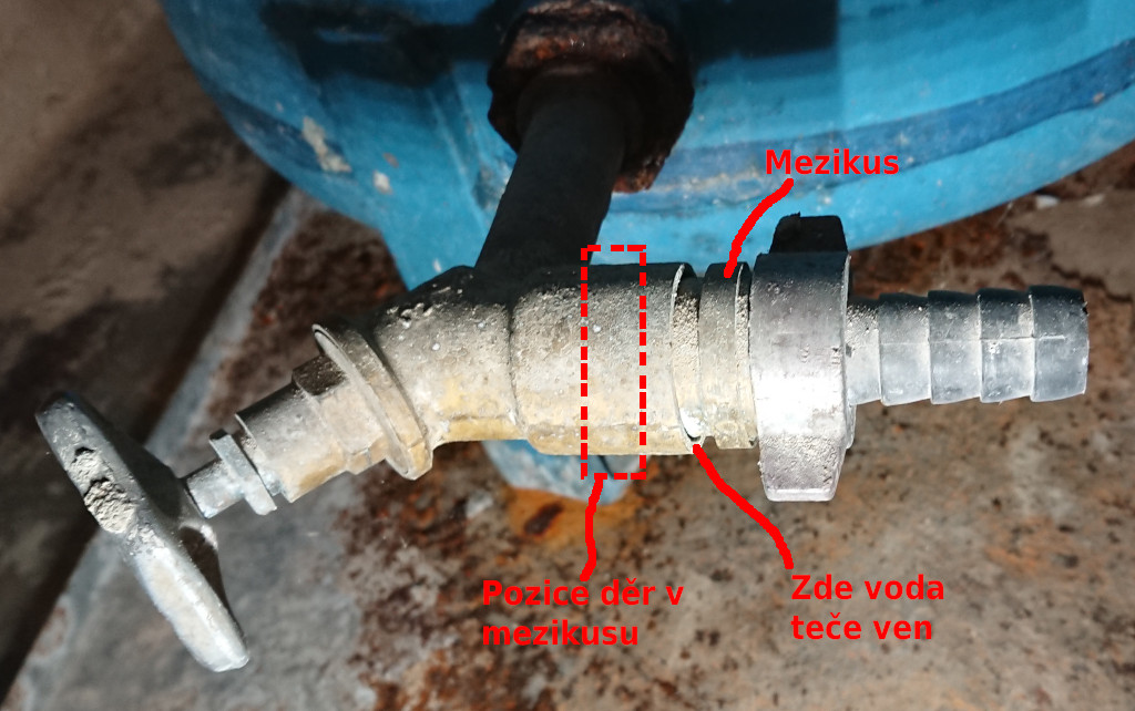 Na domaci vodarne ze 70. let mam vypousteci kohoutky s hadicnikem. Ale mezi kohoutkem a hadicnikem je zvlastni mezikus, ze ktereho tece voda bokem. Zamyslenou funkci mezikusu zrejme je zpetny ventil (ZV), ktery zabranuje tomu, aby se voda z hadice vracela zpet do kohoutku. Tento ventil mechanicky funguje (muzu ho zmacnout nastrojem), jenze pred ventilem jsou ve stenach mezikusu dve diry. A voda vali ven temito derami, takze stejne nedokaze ventil odtlacit. Ten mezikus nebude neco dobastleneho - ma na sobe obskurni zavit M33x1,5, ktery pasuje do tela kohoutku (zavit pro hadicnik je klasicky G1"). Nevite k cemu tam ty diry jsou? Nemelo treba byt nejake tesneni (gumova trubicka) mezi vnejsi stenou mezikusu a vnitrni stenou kohoutku? Nebo nechybi tam neco jineho? Mam tyto kohoutky dva a oba to maji uvnitr stejne.