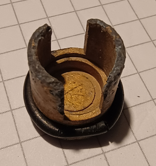 Ten dil, co vyfotil Mirku, jsem uz nekdy videl, ale zkratka chybi. Ale to nevadi. Jak psal Masar, do stredu mezikusu jsem nacpal fialovou gumovou zatku, ktera se pouziva v chemickych laboratorich. Nakupuji je v drogerii na Orli ulici v Brne a funguje to s nimi super, nikde ani kapka bokem. Taky jsem vykuchal mechanizmus zpetneho ventilu, na vypousteni vodarny byl kontraproduktivni.