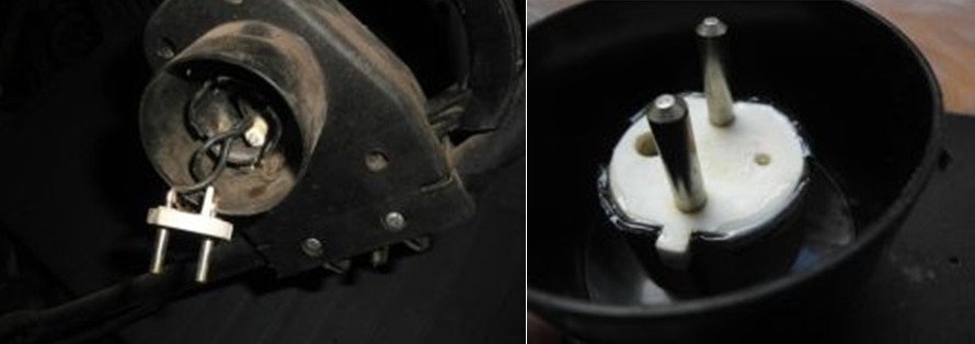 Na tej mojej bola vytrhnutá zástrčka, poriešil som lepením (pre prípadnú inšpiráciu). Styčné plochy som prešiel liehom, priečne ich zdrsnil, nadrážkoval, na obe naniesol hojne dvojzložkového lepidla, aby vytvorilo okolo lepiacich plôch aj spevňujúci "návarok" proti pohybu smerom dnu a von, tak dúfam že to zasa chvíľu vydrží.