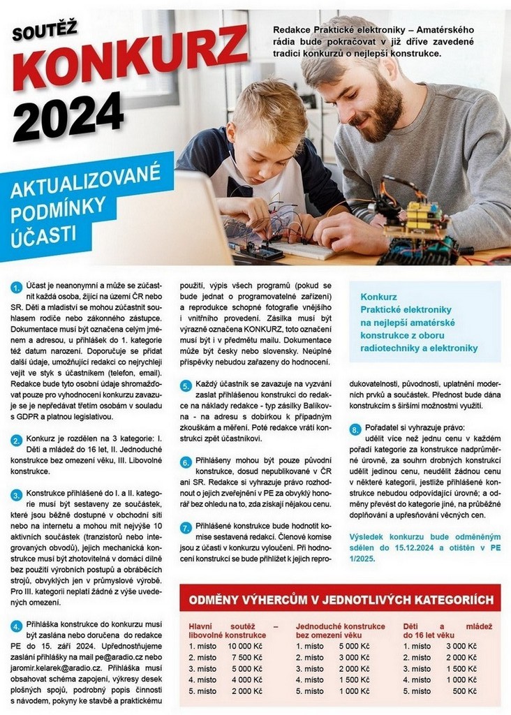 dovolujeme si Vás informovat, že jsme obnovili Konkurz, soutěž o nejlepší článek roku 2024. Prosím nabídněte nám své konstrukce, rádi je zveřejníme. Pomozte nám zvedat atraktivitu a technickou úroveň časopisu.