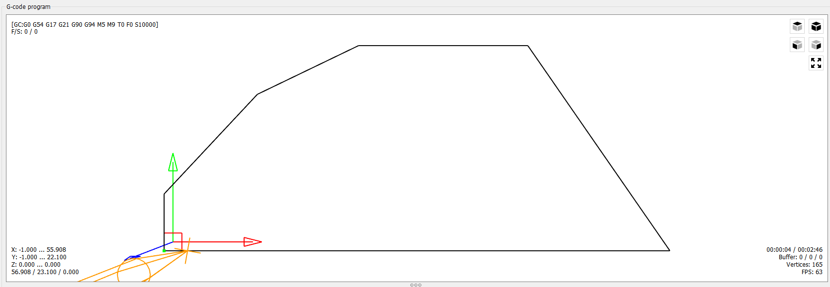 Prakticky všechny mají nějaký problém s interpretací těch řádků, Flatcam načte jednu vodorovnou čáru dole a ty dva zbývající ignorují (nebo nevím) řádek o najetí nástroje v X55.908