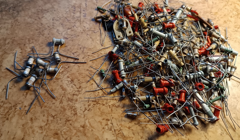 Ještě by mohla být chyba v tranzistorovém měniči. Co se týče tranzistorů (a pokud by chyba byla v nich), tak jsem si našel náhradu za ruský germaniový tranzistor PNP P4G. Jedná se o germaniový tranďák TESLA PNP 4NU74. Ty mám tedy nové včetně slídové podložky a izolačních trubiček.