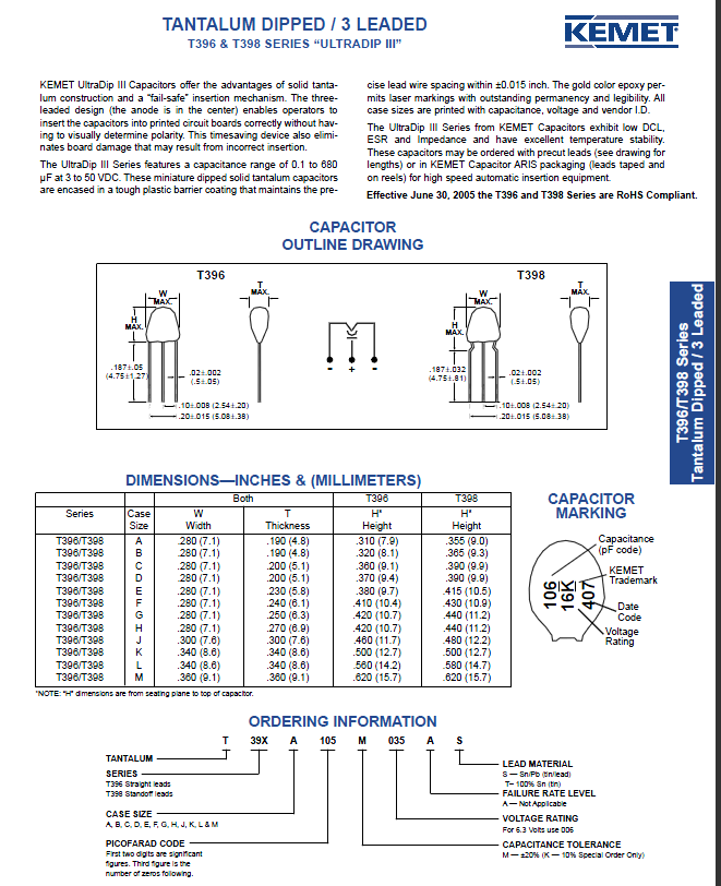 je to dvojitý tantal od firmy Kemet. Stredná noha je plus pól. Ak chceš použiť bežný elektrolyt, tak použiješ 2 kusy, spojíš obidva plusy na strednú dierku a mínusy do krajných. Ale pre 100 % istotu zapojenia, doporučujem zmerať prepískavatkom, kde je zem.