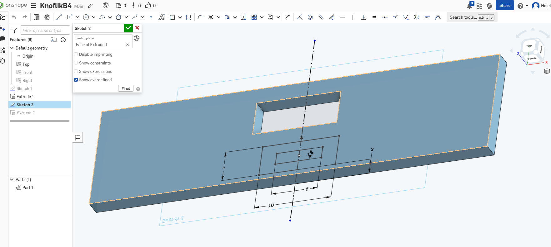 Vyzkouším udělat nástřel systemem jak píše Jirka. Dva díly lepené proti sobě, možná čep. Trochu upravím někam rozměry a budeme později korigovat. Zatím bez radiusů a šikmosti. Začneme spodní prasklou částí, potom nástavba. Jdu na jiný PC. Pošlu k úpravám.