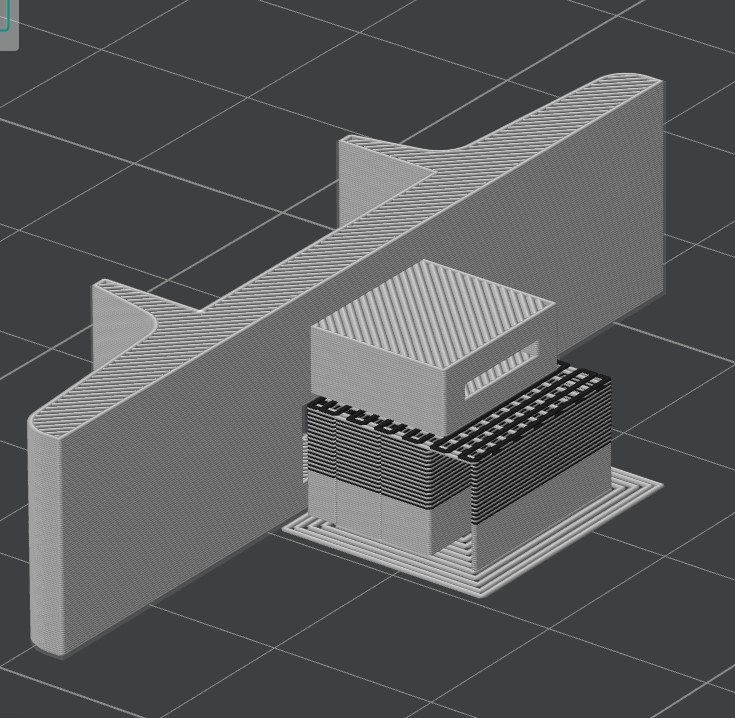Mě by tam sedělo toto. Je ale místo? Také bychnezavrhoval tisk na lešení. Komínek nemusí okézně vypadat HiFi. Hlavně pevnost a bylo by to v jednom kroku. Později vyzkouším a zkonzultuju. Dotaz: kolik je pohyb šoupěte do strany. To dá maximální trojúhelník výztuhy, nebo potom prodloužit šoupě.