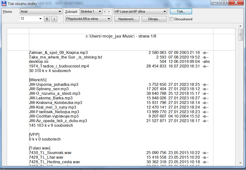 Tak jsem si udělal zkusmo složku kde mám cca 30 MP3. Očísloval jsem je a dobře pojmenoval. Jde nějakou fintou tento seznam ( názvy těch MP3 ) vytisknout?
