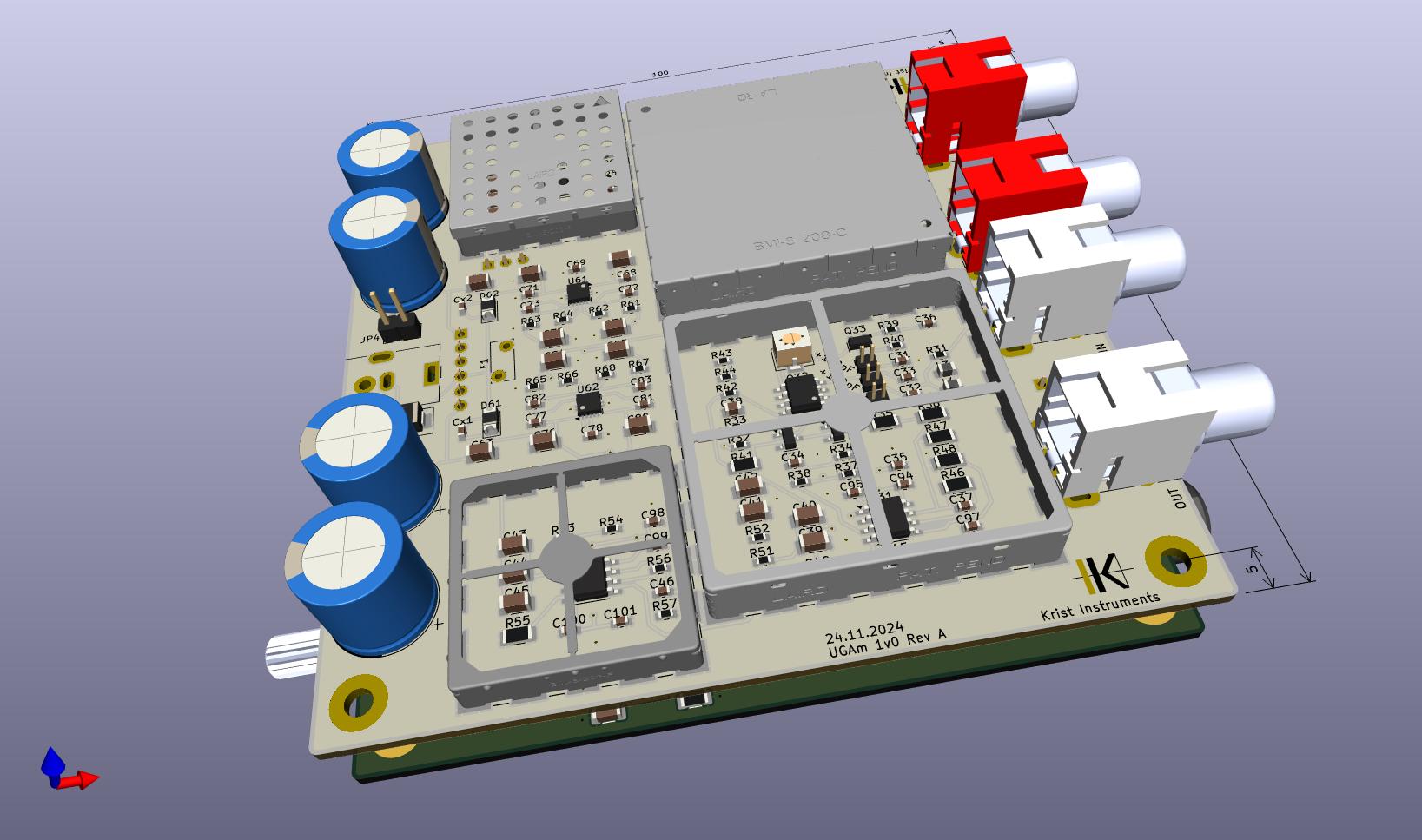 EDIT: Jo a do týdne chci nechat vyrobit desky pro nový ultimate ultra low noise ultra low distortion preamp. V základu jsou vstup/výstup na cinch, napájení AC 18 V (bude tam trošku průsak 50 Hz + harmonické), po připojení druhé desky (stack - do patra) se změní napájení na DC 24 V s DC/DC konvertorami na 500 kHz. Dále druhé patro bude obsahovat budiče pro symetrické výstupy (XLR3 konektory) a 6.2 Jack se sluchátkovým zesilovačem a poťákem na štelování hlasitosti. Krom kýblů to bude vše v SMD s odpory s nízkým kvantovým šumem a kondíky v NP0. Takže total hiend.