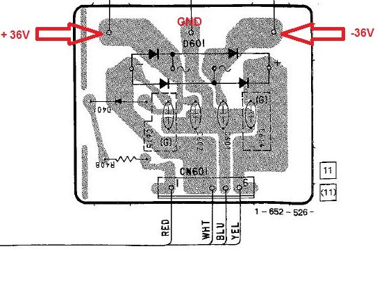 Vysvětlení je jednoduché, pro ty co nechtějí studovat servisní manuál: od + jde dioda a rezistor na RED drát pro obvod ochrany reproduktorů. Pokud není žádáno poslechnout si cvaknutí relé tak je to jedno.