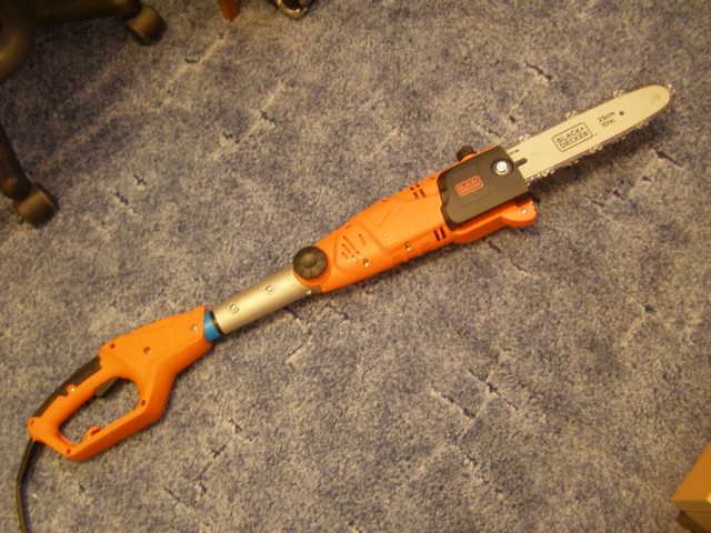 To natočení o 30st ve směru řetězu nic neřeší. Stále máš nad hlavou 3kg závaží na 4m klacku. Pilka je BD 25cm 800W/230V motor. Teď už klacek nemá a bude pro mojí potřebu použitelná. Druhé držadlo se nám nějak nafukuje už má 4ks.