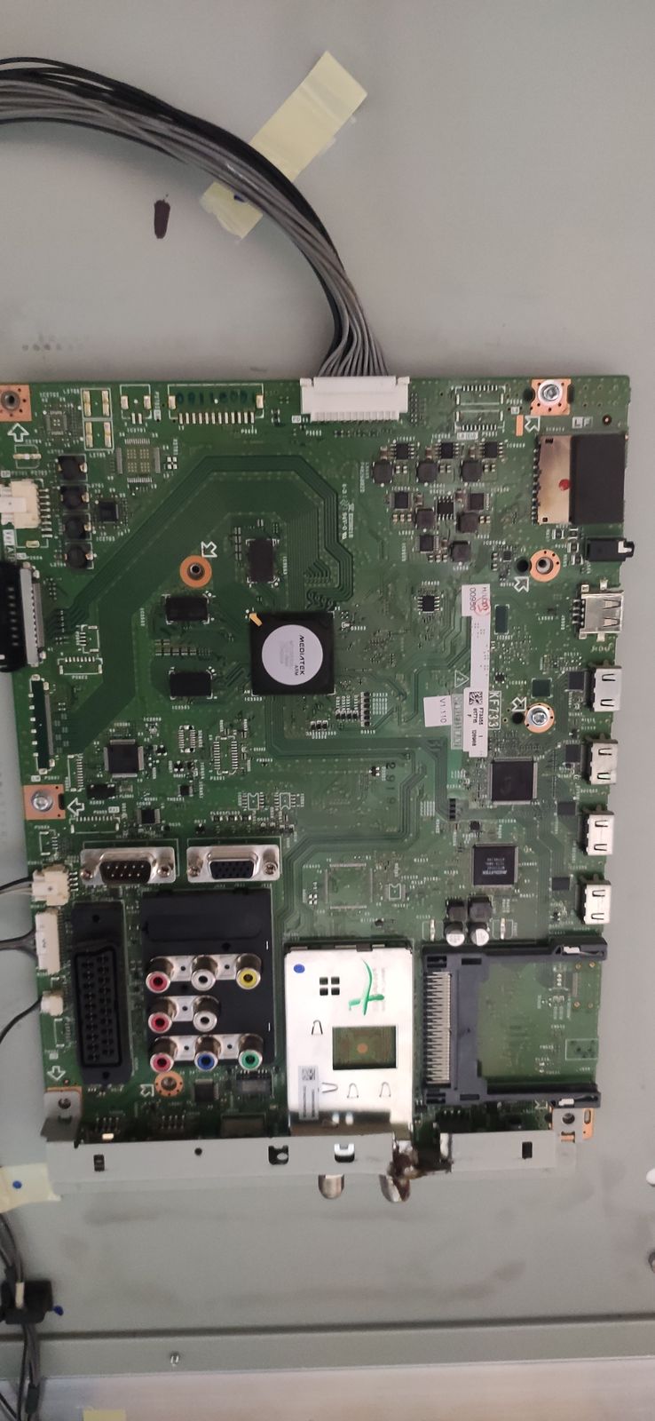 má někdo prosím představu, jaká by mohla být závada na desce mainboard této tv Sharp LC-60LE635E. Měl jsem možnost vyzkoušet v totožné TV a tam se projevuje stejná vada. Popř. dokázal by někdo opravit? Obraz bliká a stále se mění, běhají pruhy, řádky, a občas vypadne komplet.... foto v příloze. Na desce stále bliká červená LED