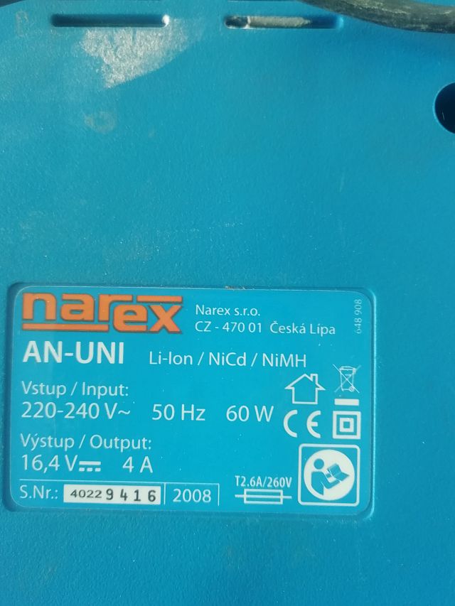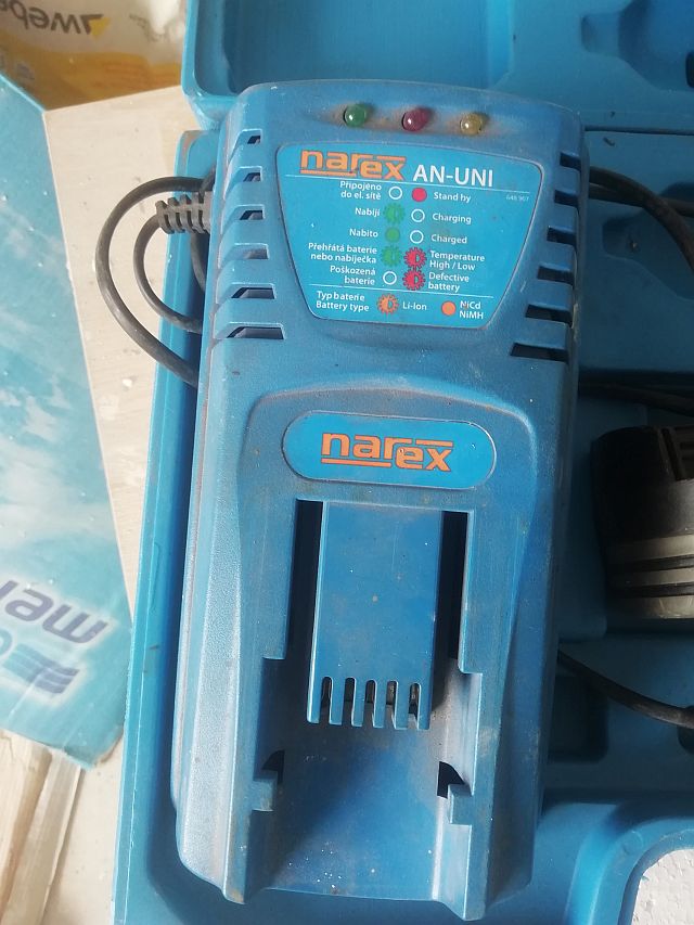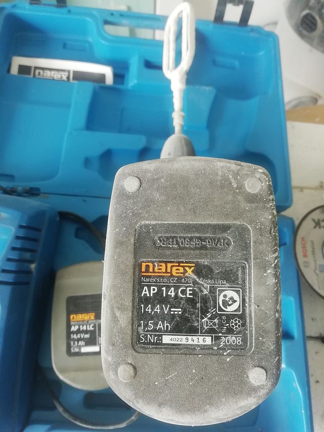 To Celeron: Fotky všeho co mám. Originální Lion NAREX, vyměněny pouze články, elektronika původní. Původní nicd, vyměněny články a přidán BMS, snížen na půlku mínus kontakt. Akučka je nalezec, válel se celý kufr u červeného kontejneru. Protože to byl kompletní kufr se vším, usoudil jsem, že se vyplatí to opravit. Nicméně po výměně baterií dostala záhul - míchám s ní barvy a sádru, tak shořel motor, asi byl načatý. Měl jsem doma motor, který se hodil rozměry, ale byl na 18V. Dal jsem ho tam, menší napětí, méně otáček, ale kroutící moment je dobrý. Na míchání a jako šroubovák možná je to i lepší. Na míchání používám metlu z mixéru ETA - viz. foto. Funguje dobře, jen ji chci prodloužit dřík, aby míchané směsi nestříkaly na akučku. Docela rébus byl stáhnout a nalisovat pastorek. Potvrzuju, že futrály nicd a lion pasují do nabíječky. Konstrukčně je to PRC.