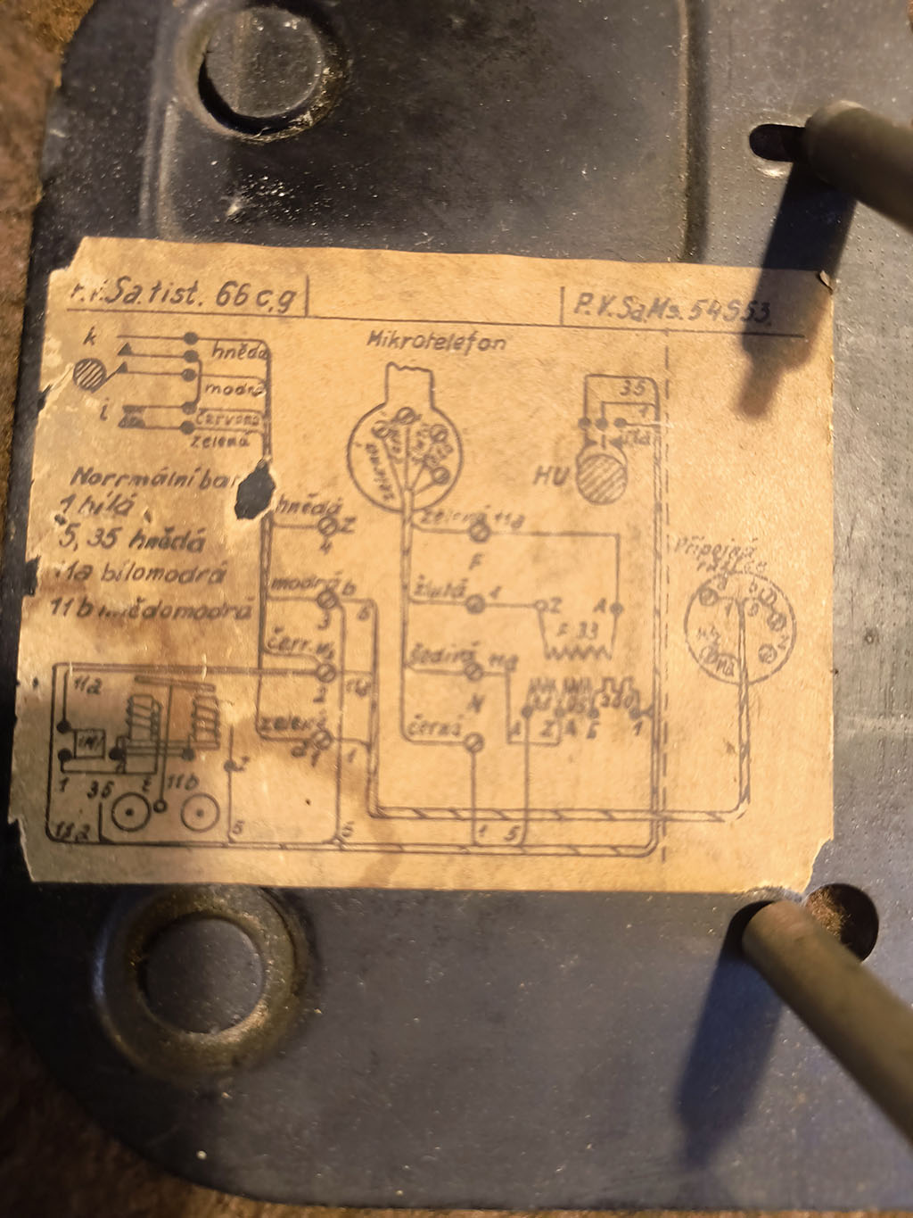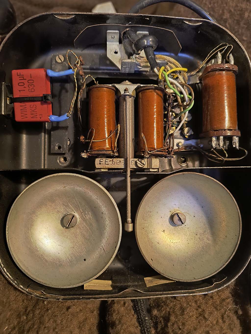 Ještě jsem odhalil rozdílné sluchátkové vložky. Jeden telefon, ten s bakelitovou vidlicí, má instalovanou "těžkou" vložku 2x25Ω a v druhém je lehká vložka 50Ω.