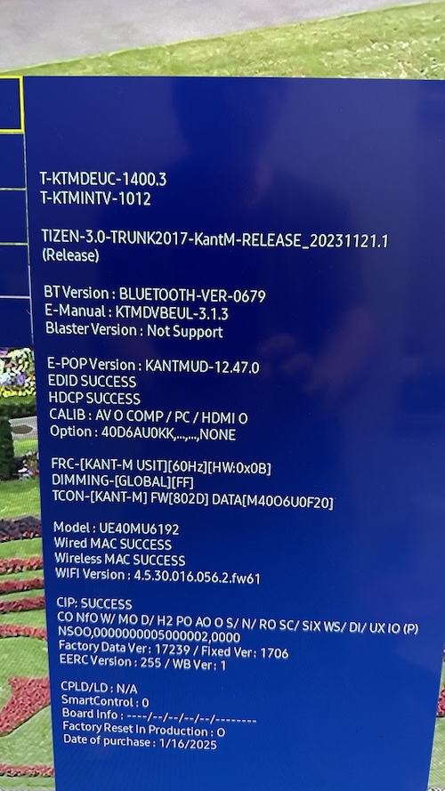 po výměně základní desky tv chodí kromě BT. Stále hlásí "Není k dispozici" Musím používat starší ovladač. V service menu se BT hlásí i má adresu viz obr. ale nechodí. Je tu prosím nějaký odborník na Samsungy ?