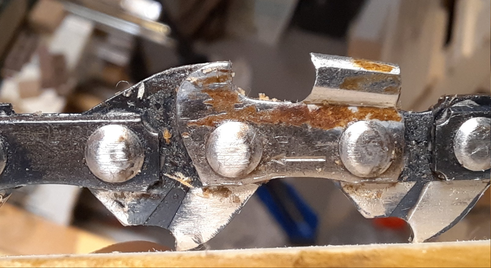 Je ještě jeden přístup k problému omezováku - mám souseda, který se živí těžbou v lese. Na velké stromy má pilu více než 10k s lištou cca 70cm . Když koupí nový řetěz, rozbruškou ubrousí omezováky až na doraz k článku. Když pak podřezává velký strom , nemá tam piliny, ale "dřevitou vlnu" s kousky třeba 15 cm dlouhými . Je to ale chlap 2m/120 kg. Já bych to určitě neudržel v ruce a moje Stihl 231 by to neutáhla - klouzala by spojka, do háje by šly ložiska, přehřátím gufera a taky klika.