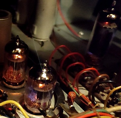 Veď práve, tie 6F32 sú tu napájané iba zo 180V, getr majú pekne lesklý a javia sa ako nepoužité. Zato usmerňovacie dvojdiody v zdrojovej časti, ergo lampy stavané na najväčší prúd v tomto stroji, mi toto napríklad nejavia vôbec...