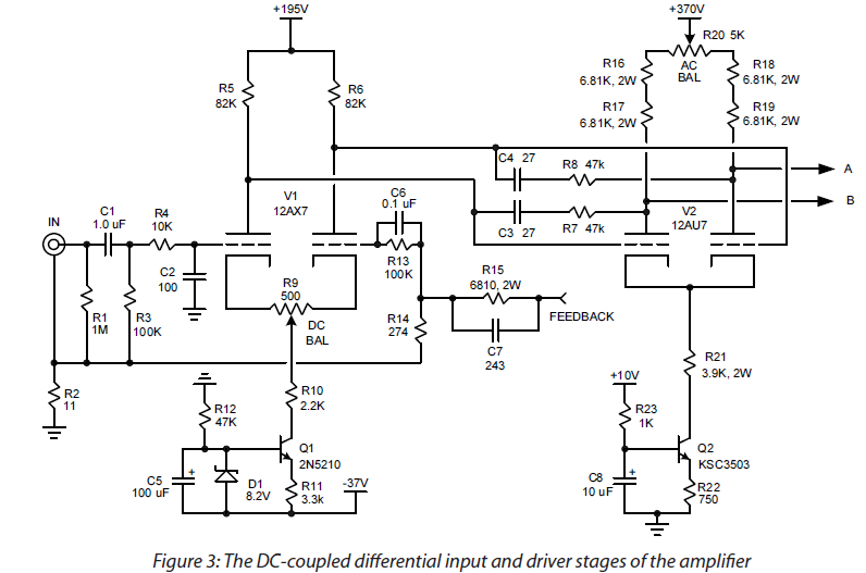 Neco podobného jsem stavel jako na obrázku 12AU, slouží to jako budič PP GU50 s CFB. A to je hodně málo strmá elektronka a CFB tomu přidá další naroky na buzení. Modifikace - jako vstup používám E88CC s CCS 2xDN2540, budič používám EF184 zapojenou do triody napájenou 400V, ( je hodně lineární) jako CCS používám opět 2 x DN2540. Dost blbě se to nastavuje, protože je to celé stejnosměrně vázané. Ale po letech prokopávání slepych ulicek jsem to doladil. Dokonce jsem k tomu i vyvinul DC servo aby si to udrželo DC parametry.
