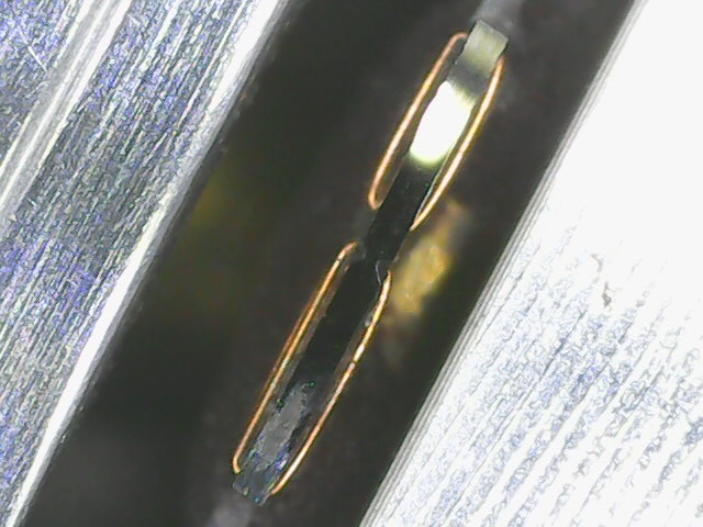 Na čištění hlav byla ve vercajku dřevěná špachtle asi 15mm široká s nalepenou jelenicí + IPA. Mě se osvědčil proužek kladívkové čtvrtky opět s isopropylem. Stereo přístroje měly snímací hlavy zvuku nahrané šikmo na pásce pod obrazovou stopou. Mono zvuk byl nahráván podélně na pásce jako u obyč přístrojů. Mezeru na hlavičce nemusíš vidět, bývá u lepších strojů vyplněná pryskyřicí do roviny pólů kvůli zpevnění a zamezení zanesení mezery otěrem z pásky. Ale mezi póly je patrné zúžení tlouštky feritu a tam je ona mezera.