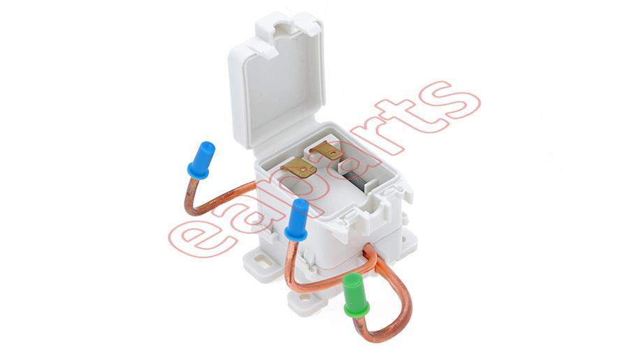 Na obrázku jsou patrně termostaty. Má lednice nějakou elektroniku? Při měření odpojit oba vodiče 230V elektroniky. Tam je nebezpečí zničení impulzáku megrem. Zjistit megrem izolační stav termostatu proti kostře. To při odpojeném motoru. (voda, propálené kontakty na kostru?) Izolační stav motoru je jaký? Naměříš to jako celek protože jsou jenom 3vývody. Někam ten proud navíc přece teče.