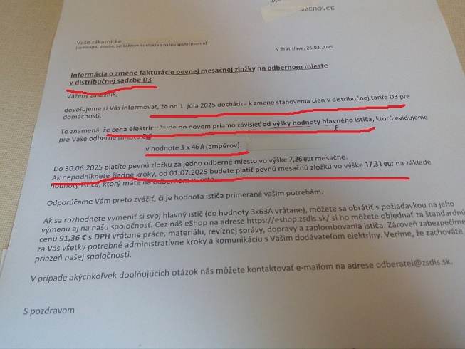Ale: když znovu zavedli tarif pro 40 A, někteří dál platili za 50 A, protože jim ten čtyřicítkový automaticky vrátili jen při změně odběratele, nebo distributora. Málokdo se dověděl, že se o vrácení nižšího tarifu musí přihlásit. Jestli to rozeslali písemně, bylo to zabalené do tolika kulatých slovíček, že tomu sotva kdo rozuměl. A kdo ví, jestli někteří tu padesátkovou sazbu neplatí dodnes.