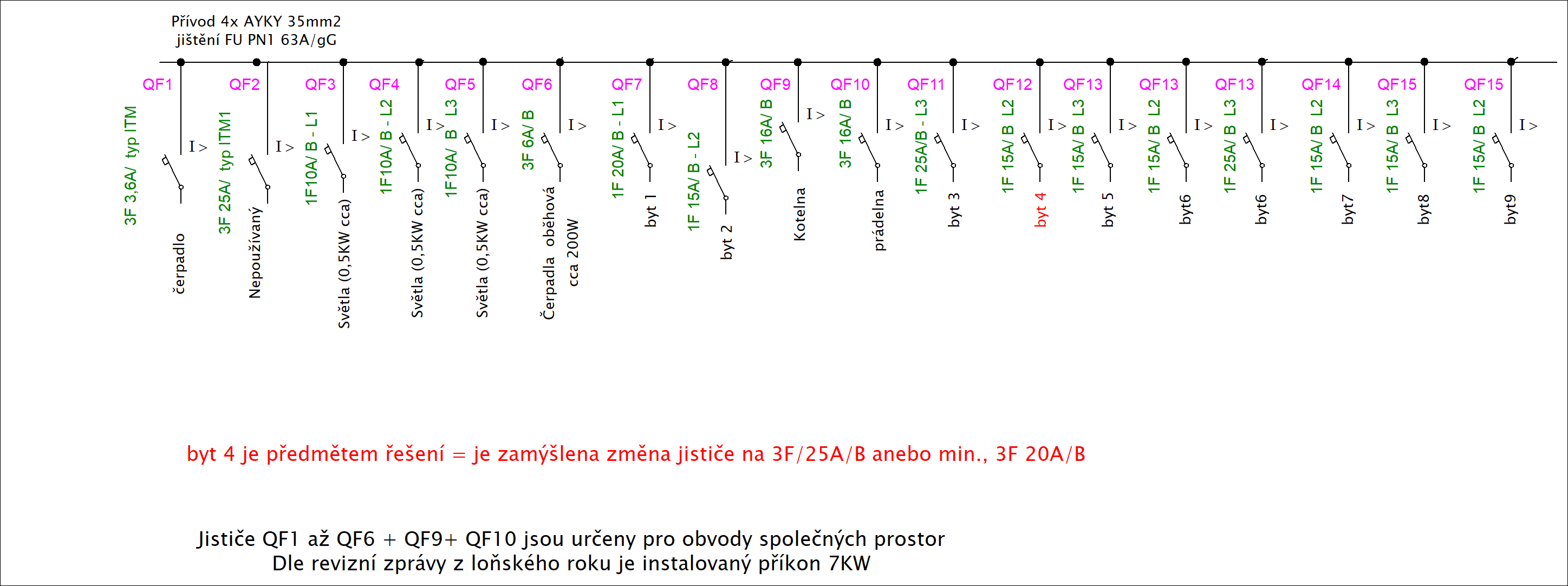 V podstatě ve společných prostorech je prádelna ,svítidla, kotelna, kde jsou oběhová čerpadla. Čerpadlo při provozu odebírá 3A (rozběh bude druhá věc).