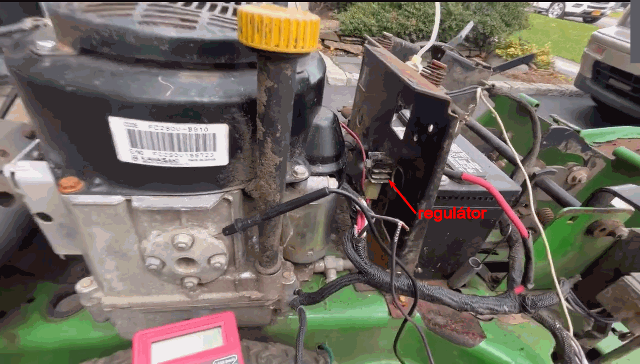 Je možné, že ne a mám bastl. Vzhledem k tomu, že si to sem někdo pořídil a pak tam nabastlil spínačku ze Skody 105, karburátor ze sekačky atd. Všechno to postupně vracím zpátky. Na spínačku kašlu, ale třeba při sekání ma motor sílu jenom na sytič, jinak vůbec. Jinak existovala verze s el. startérem a ručním lankovým. To, co tam mám já je ovšem originál el. svazek a konektor na regul to nemá. Bylo by poznat, ze do toho někdo zasahoval. Obrázek je, předpokladám, z kanálu "Mowers N Blowers". S tím chlápkem jsem si psal. Elektrice moc nehoví, jenom zjistil, že by to tam mělo být a tak vyhrabal ideální el. svazek a osadil. Dneska jsem to změřil po 2 hodinách práce. Průměrně z toho leze cca 14,7 V. Proudy bohužel nevím, nemám měřidel. Ale buď tedy budu shánét ten zkratový regul nebo zkusím ještě nějaký "větší", aby se to prostě drželo níž, protože sekám fakt lány vysoké trávy a jedu na plno. V nejhorším tam nabastlím odpojovač baterky a vyseru se na dobíjení. Startovat to bude, pro běh netřeba a občas dobiju.
