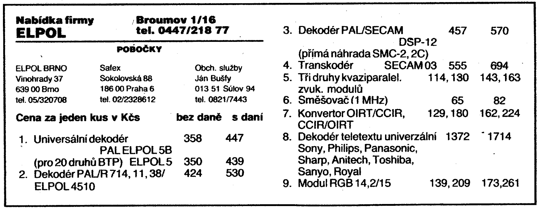 Ono těch dekodérů bylo víc a pro jistotu jsem vozil s sebou dva tři různé (nebo aspoň jeden univerzální, a stejně jsem v tom univerzálu párkrát na místě přehazoval tranzistory NPN na výstupech za PNP): mezi lidmi běhaly i televize po Sovětech individuálně dovezené, o kterých jsem podle názvu nevěděl nic, a teprve po otevření jsem vybíral dekodér.
