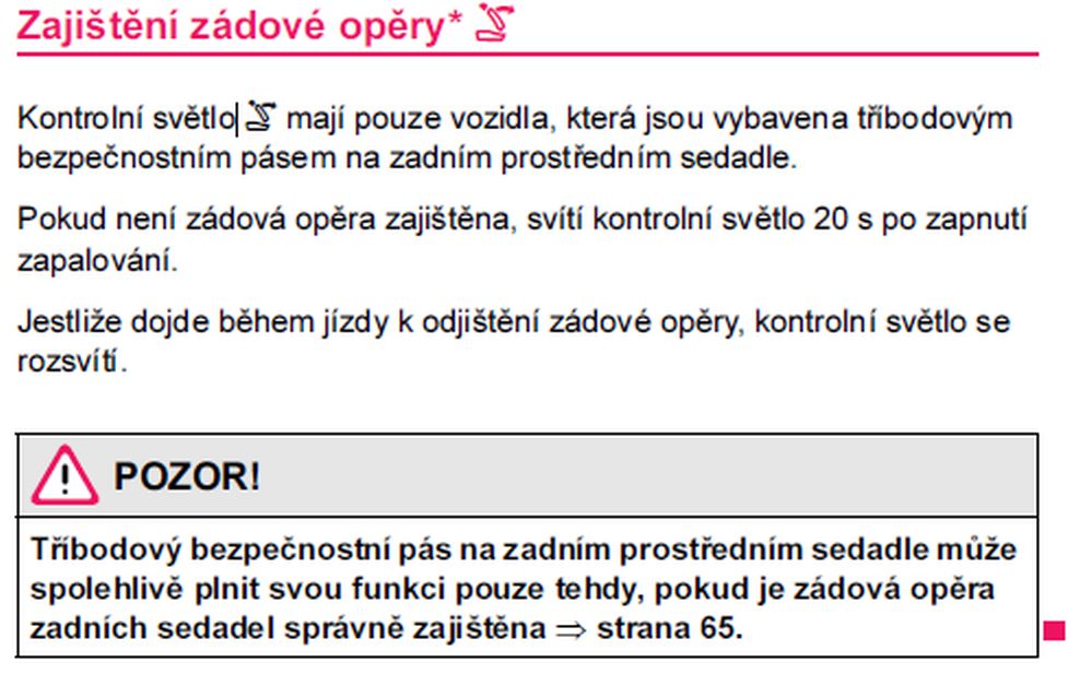 Jo, to už jsem taky našel, ale podlě mě to trojbodový pás nemá. A určitě jsem někdy jel se sklopenými sedadly vzadu, tak by to mělo svítit, ne?
