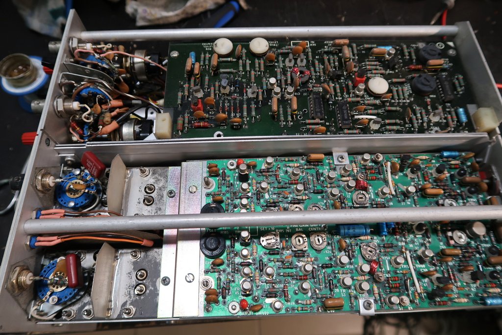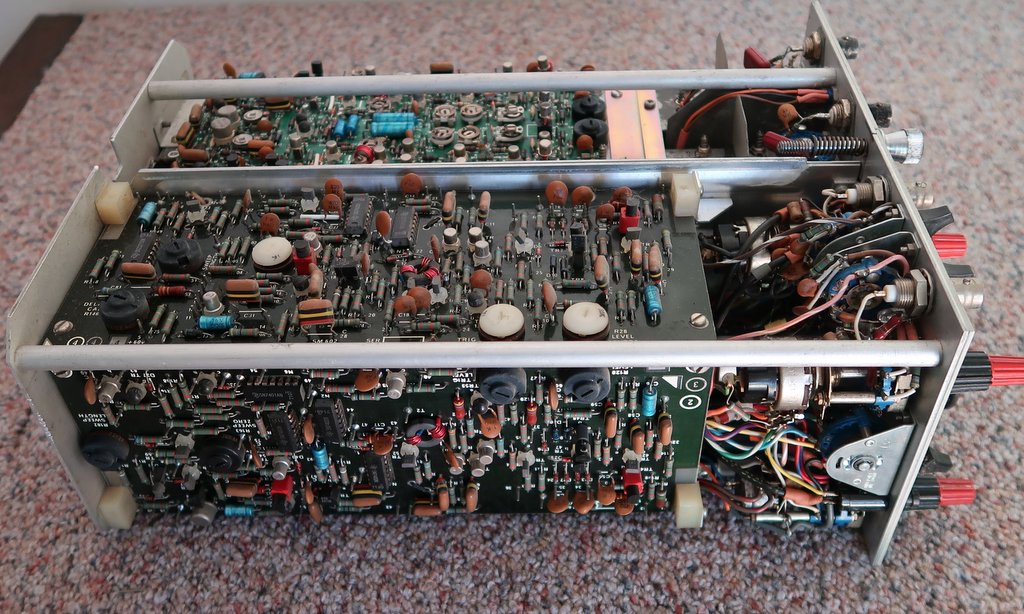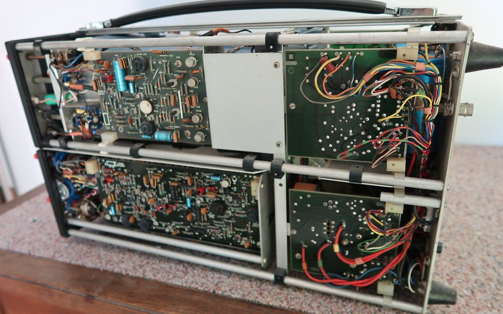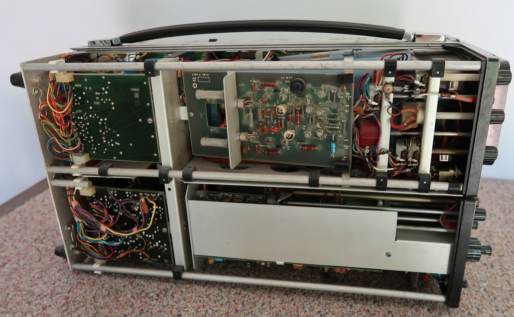 Protože moje hlavní parketa jsou osciloskopy od Tektronix, tak jsem musel trochu srovnávat konstrukce. Co se týká mechaniky a ovládacích prvků, tak je to podobné konstrukci Tek 453 z poloviny šedesátých let. Obvodové řešení je dost podobné, ale nejsou zde žádné integrované obvody vlastní výroby jako u Teku, je tu pár IO řady 74.. a nějaké operáky a stabilizátory.