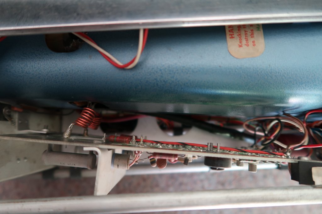 Následující fotky jsou před renovací, je vidět že desku zdrojů již někdo opravoval, jsou tam MAA723 a nějaké teslácké tranzistory. Jinde není žádný zásah viditelný.