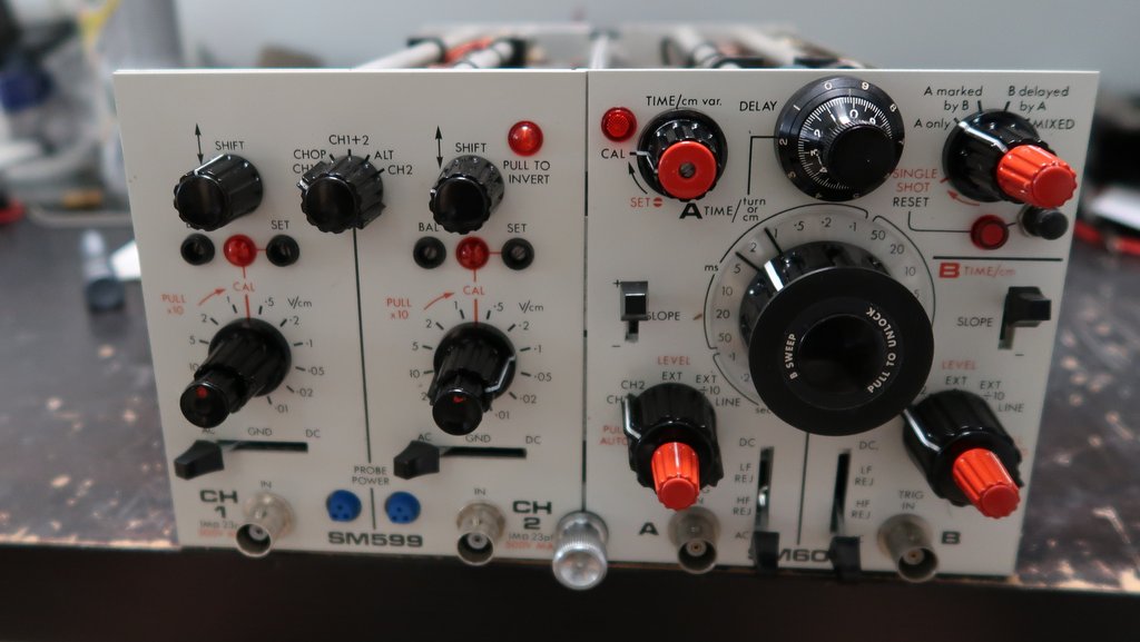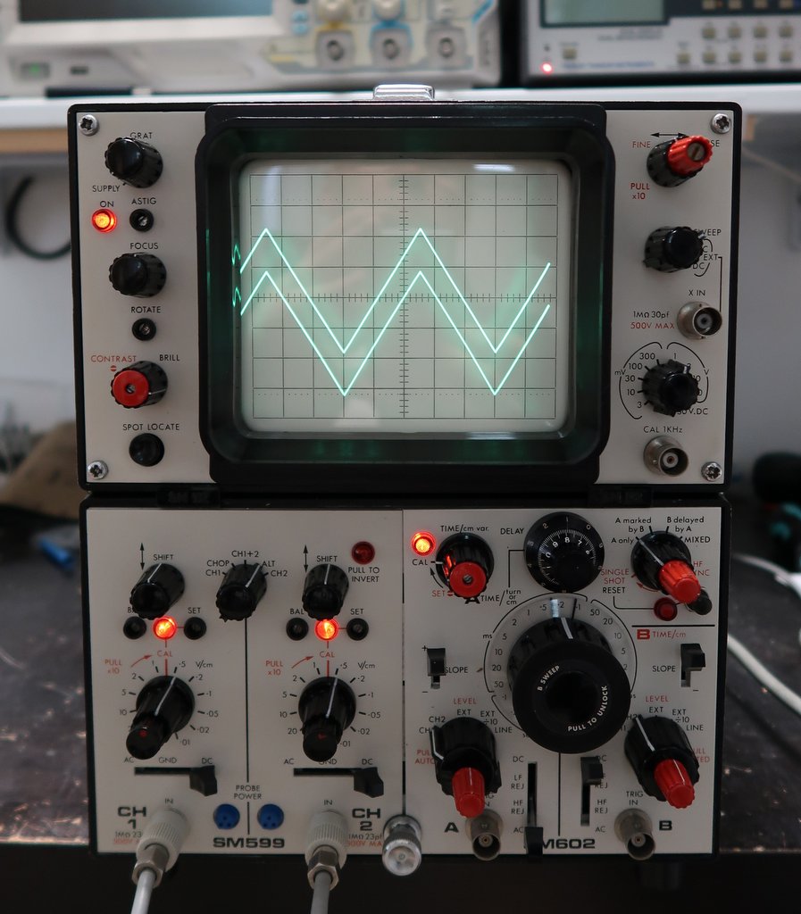 Jde o dvojkanálový modulární osciloskop do 100MHz. Ač modulární, zůstalo pouze u modulů SM599, což je dvojkanálový vertikální předzesilovač a M602 je dvojitá časová základna.