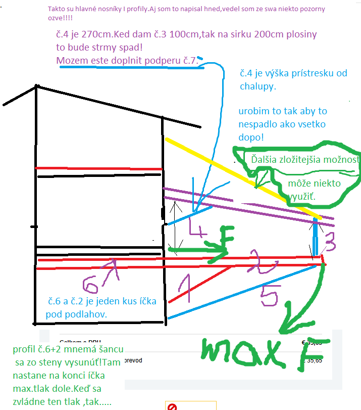 Ale až máš pocit, že doplnenie "rôznych" podpier ti ešte zvýši nosnosť celej konštrukcie, tak ich tam daj... ale uvedom si dôležité body kde je tá vysutá konštrukcia upnutá a aké je "smerové" pôsobenie síl pri zaťažení... Zbytočne budeš mať x-tonovú striešku - keď ti ju neudrží pri zaťažení murivo/stena